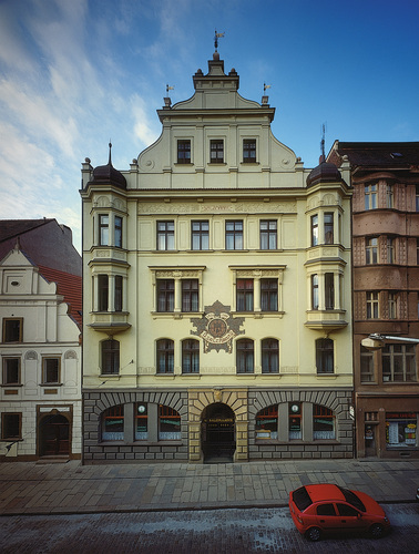 domažlické náměstí, které patří k nejkrásnějším v západních Čechách, což potvrzují měšťanské domy s kompletně zachovaným podloubím. Na první pohled nás zaujme novogotická
